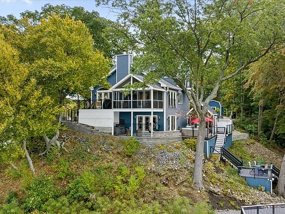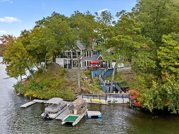 OFFER DEADLINE MONDAY 10/16 BY 5 P.M. A stunning waterfront paradise situated on a picturesque point. This exceptional property boasts breathtaking, unobstructed views of Lake Quinsigamond. With spectacular sunsets and the perfect blend of natural beauty/modern comfort, this is a dream home. Inside you are met with an open layout w/ impressive views, a grand fireplace, and vaulted ceiling. The kitchen features beautiful cabinetry, a peninsula, S/S appliances and a custom pantry. Upstairs is a primary suite with new gleaming hardwood flooring, a balcony, full bath and walk-in closet/laundry area that has endless possibilities, a potential office/exercise area. Host guests downstairs w/ a wet bar, entertaining kitchen, full bath and direct access to the outdoor bar w/ cascading decks down to the water. This home truly captures a "treehouse vibe" offering a unique sense of living among the treetops while being surrounded by the beauty of the lake.