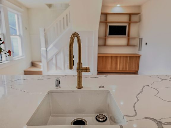The lower level is an open living space with more custom carpentry and a newly renovated kitchen. There is also a second bathroom, spacious laundry area and bespoke built-in lockers that fully resolve storage.