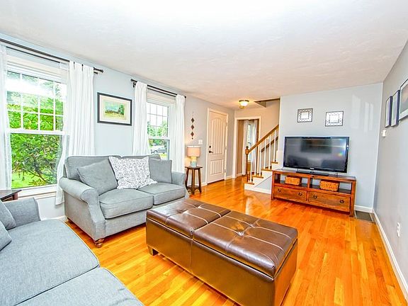 Super cute and stylish Garrison Colonial sitting on a gorgeous .85 acres of land. This 3 bedroom and 2 full bath home is located in a walk to town/train horseshoe neighborhood. Expansive and level front and back yards with mature evergreens flanking the lot lines help define this piece of property. Upon entering the first floor, guests are welcomed into living room. They will also experience stainless steel appliances, white kitchen cabinets, a dining open to the kitchen, and fireplaced family room. Hardwood floors throughout most of the downstairs. Large master bedroom & walk-in closet connects to a Hollywood style 2nd floor bathroom with a double sink vanity. Good sized bedrooms, a second walk-in closet located in the front bedroom too. Roughly 400 additional square feet in the nicely finished basement Media room, Central Air, updated windows & more. Schedule your showing today!