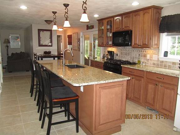 4 Bedroom Colonial on a cul-de-sac with a gorgeous new maple kitchen w/granite counter-tops & huge center island, walk-in pantry & new tile floor. Mom will love it! Awesome family room with cathedral ceiling, fireplace & built-ins - great for entertaining - formal dining room & living room. All bedrooms are good sized with double closets, updated master bath with tile. 4 season porch & deck, private yard, new heat & hot water, lawn irrig, town services & natural gas, newer garage doors. GREAT HOME - WON'T LAST!
