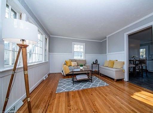 Move right into this great remodeled starter home or great for retirement with new siding and roof, with a private back yard. Home has an eat in updated kitchen with great cabinet storage. Living room and bedrooms all with HW floors and a couple of bonus rooms in lower level.