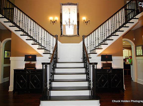 Stunning 2 story w master down. Formal living w fireplace, formal dining w coffered ceiling & judges paneling. Gorgeous 2 story foyer with 21' ceiling and 2 staircases. 1 leading to a private guest suite, 2nd to the add'l 3 bedrooms &bonus. Lg breakfast room off gourmet kitchen w granite w vegetable sink & disposal, pot filler over range, desk, island& bar. Hand scrape oak floors on 1st floor & Upstairs hall. Master suite w huge walk in shower, tub &double vanities. Beautiful back yard living area with stamped concrete covered porch, stone patio's w gas firepit & grill hook up. Landscape lighting,3 car garage w add'l circle driveway. Gas lit lanterns on the spacious front porch.