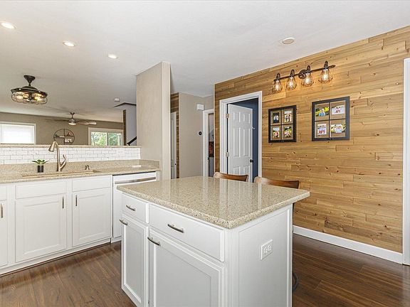 Welcome to this gleaming two-story home nestled in the Fox Ridge neighborhood. As you step inside, you'll be greeted by wide LVP flooring that extends throughout the main floor. The open-concept design invites to the kitchen, featuring quartz countertops, an island & pantry for all your culinary needs. Shiplap walls in the living room add a touch of rustic charm which will lead you to the deck that overlooks lush trees & massive backyard. Upstairs, the master bedroom offers plenty of space & boasts a large walk-in closet & master bathroom. The loft space has been transformed into an office space, complete with barn doors. This space can easily double as a playroom or a guest room to suit your needs. Two additional bedrooms complete the upstairs, one offering a walk-in closet. The basement is for entertainment enthusiasts, featuring a movie room & ample storage space. Conveniently walk out to an oversized patio and fenced-in yard, creating a fantastic backdrop for outdoor gatherings.