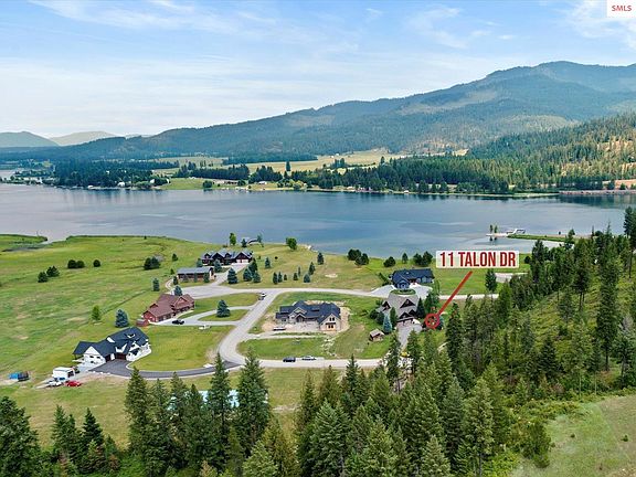 Welcome to 11 Talon Drive, a stunning property nestled in the picturesque town of Priest River. This captivating home offers a tranquil retreat w/ its serene location, breathtaking views of rivers & mountains, community beach & dedicated boat slip. The main level features an open floor plan, where the living room, dining area, & kitchen seamlessly flow together, creating an ideal space for entertaining guests & relaxing. The living room boasts large windows that flood the area w/ natural light & provide river & mountain views. A cozy fireplace adds a touch of comfort & sophistication to the room. The kitchen features granite countertops, SS appliances, ample cabinet space, & a center island w/ a breakfast bar. Main floor primary suite with a walk-in closet, and a luxurious en-suite bathroom complete w/ a soaking tub, walk-in shower, & dual sinks. 2 large additional well-appointed bedrooms & 1.5 bathrooms provide plenty of space for family members or guests. Home is on 1-acre parcel!