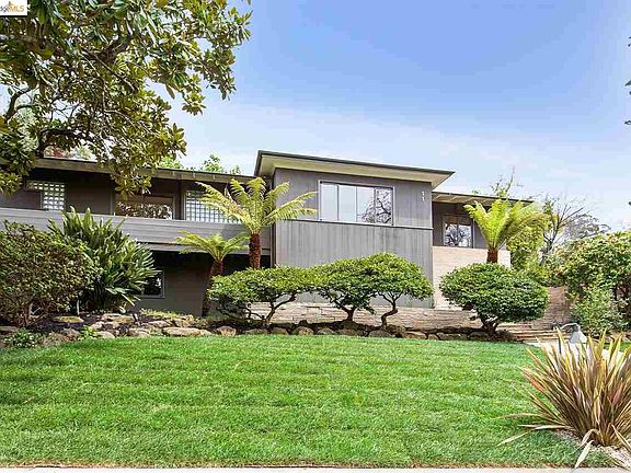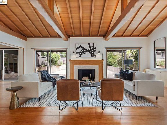 Exceptional Mid-Century Jewel designed for one level living by Berkeley Architect John Ballantine with 74 Walkscore. Three full bedrooms on the main level including the master suite as well as a period-perfect wood-paneled office with intact wet bar. Spacious, eat-in Chef's kitchen with updated stainless appliances, generously proportioned living & dining rooms with cathedral ceilings flowing through glass doors directly onto the patio - perfect for large gatherings and entertaining. Lower level en-suite, additional rumpus area and expansive storage. Access the property from Tanglewood or by private road leading to the sizable two car garage. Ideally located just blocks from The Claremont Hotel & Spa, College Avenue shops and restaurants, and the Claremont Canyon Hiking Trails. Close to UC Berkeley, public transport. Rare opportunity. Open Sat/Sun 4/20&21 2-4:30pm