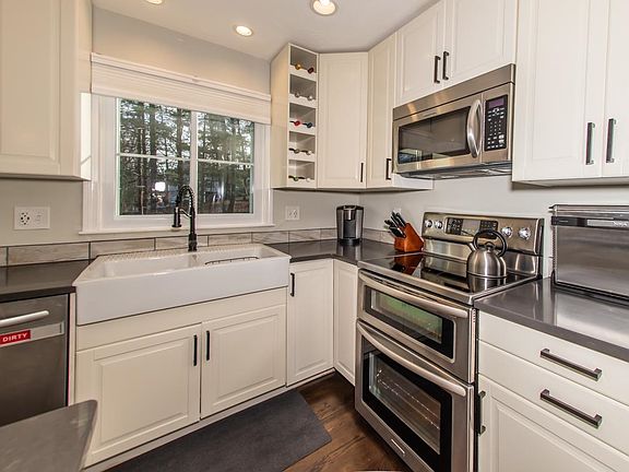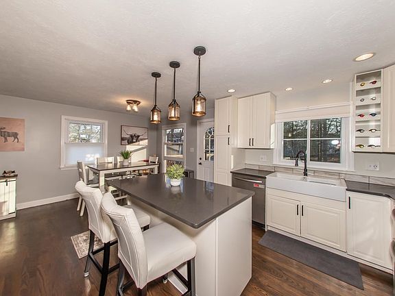 STUNNING Updated Home with a modern flair is sure to please! Showing Delayed until OPEN HOUSE Jan 15 SUNDAY 11-1~ SEE YOU THERE! Upgraded stylish front door with sidelights welcomes you to this Graceful Open concept living at its BEST! Beautiful newer White Kitchen with Quartz counters, SS Appliances, Center Island. Dining Area with walk out to the rear deck overlooking the yard. Large living room with Hardwood floors throughout the first floor, Full totally upgraded tile floor bath with floating cabinet & Sconces. 2 Good sized bright Bedrooms, Wainscoting flanked Harwood stairs leading to the lower-level where you will find a bright huge family room or bonus Master suite, spacious Bath with shower, Laundry and access to the finished heated garage with walk out to the back fenced in yard. Upgraded lighting throughout, Oversized garage door, Roof 3 yrs, Windows 1 yr, New ducting, Support beam, passed radon test, Propane forced Air heat (can add central A/C) PUBLIC WATER/SEWER, New Patio, Everything has been inspected, corrected, upgraded and maintained! Service package available. Ideal Location in a neighborhood walking distance to the Rail Trail, Restaurants, Bars, services, schools, and stores. Minutes to Tuscan Village and RTE 93.
