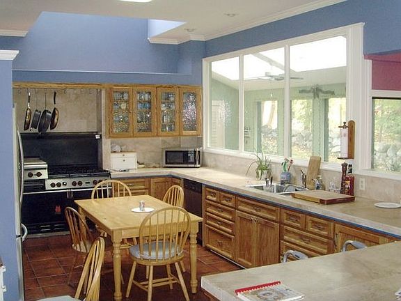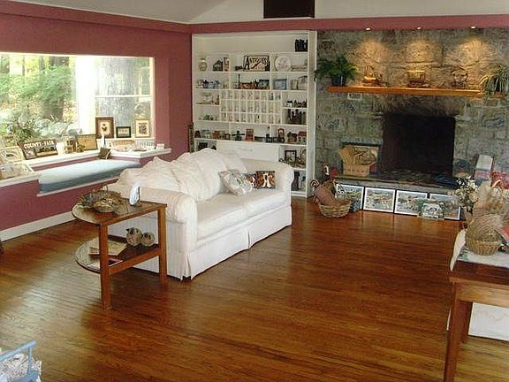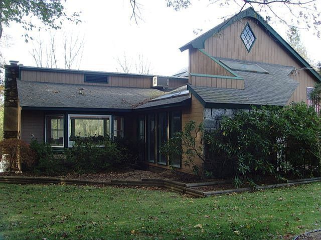 LET THE SUN SHINE IN...BRIGHT home with lots of glass/windows and an entirely new feel. Starting with a glass hallway entry with huge windows on both sides - one side showing the private yard and the other overlooking the amazing kitchen! This hallway entry leads to the wide-open living & dining rooms accented by high ceilings with beautiful wood beams across and skylights. The kitchen features a high end WOLF chef style oven and ceramic tile, a marble counter, tons of cabinets and crown molding everywhere. An amazing stone fireplace w/ built-in shelving accent the living area. Incredible Jacuzzi tub in 1 bathroom plus BONUS room & 2 bedrooms complete the home. And you'll love the sun room, too. The yard features lots of trees and woods surrounding the home so privacy is not an issue. Nice rear deck overlooks the level rear yard.