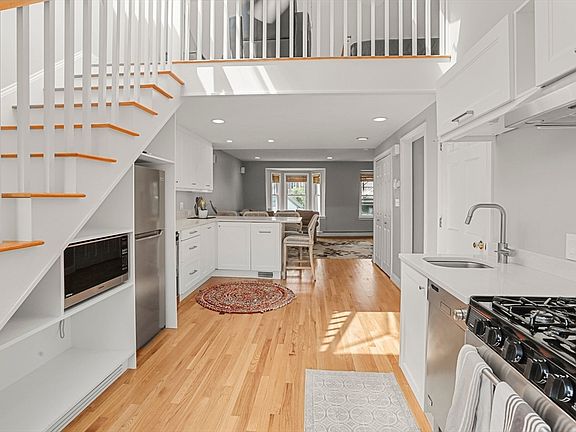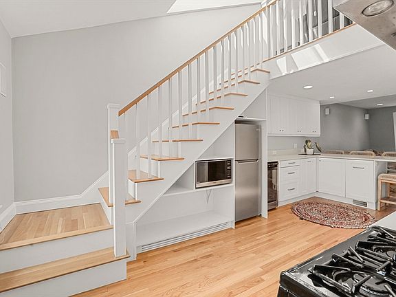 Lofted 1 bedroom 1 bathroom condo on Telegraph Hill in South Boston! This unit features washer and dryer in unit, new kitchen, and private back deck with roof rights. It was thoughtfully renovated to maximize space without compromising style. Brand new stairs with built in storage were built to access the lofted bedroom. The renovated kitchen includes white shaker cabinets, quartz counters and a large peninsula for communal meals overlooking the living room. With a quintessential bay window in the front and an oversized skylight, the space is sunny and welcoming. Dine al fresco on your back deck off the kitchen while you dream of the amazing views you will have when you build your roof deck! Known as the San Francisco of Boston, Telegraph Hill is filled with beautiful Victorian row houses, and is an ideal location right near the East and West Broadway split so you don't have to choose between the west and east side, instead you are close to all- including the beach!
