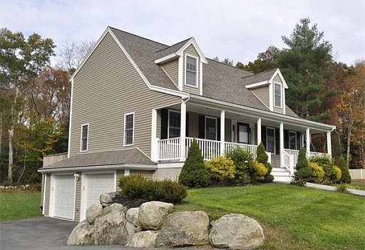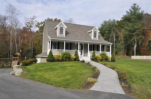 Sit back and relax in this serene setting. Beautiful New England Cape home with Farmers porch and 2 "A" dormers. This home is situated at the end of the cul de sac. With its Brazilian cherry hardwood flooring, granite counters, stainless steel appliances and custom cabinetry, this is sure to please the most discriminating of buyers. All this plus central air, economical Gas heat,irrigation, alarm, and finished lower level with custom stamped concrete patio with fire pit area and a huge yard to play ball. Come take a look!