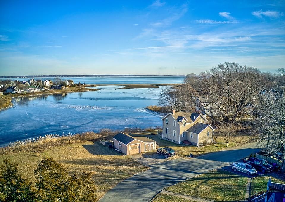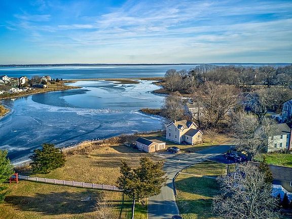 This charming cottage, centered on three lots with sweeping water views of Narraganset Bay could be yours! Tucked away in the Shawomet neighborhood, you'll love the updated finishes and lovely french doors throughout the home; the on-demand hot water and other mechanical's are top-of-the-line. The kitchen layout is chef's dream, and has stainless steel appliances and all-wood cabinetry in the most lovely green stain, and very cool concrete counter tops. The front load washer and dryer are conveniently located on the main floor. Radiant heat and premium bamboo flooring on the first floor will feel so smooth and warm underfoot. There is a sweet little half bath off the large living room; which has views facing East of the water and sunrise, even the Mount Hope Bridge! Three bedrooms on the third floor and roomy full bath give you all the space you need. Home is connected to public sewers, flood insurance required. Possible to rebuild a larger home on the lots.