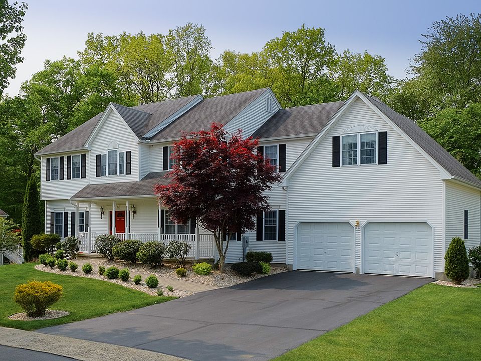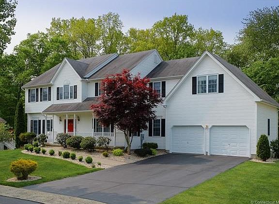 Your search ends here! Gracious and modern colonial in coveted Wallingford cul-de-sac. Over 3000 sq/ft of living space and high ceilings provides an open, airy feel. Recently remodeled eat-in kitchen with granite counters and newer stainless steel appliances opens to a spacious family room with gas fireplace. Step outside to the deck overlooking the yard backing to wooded open space. The main level also offers a formal living room, formal dining room, half bath and laundry room. The upper level boasts not one, but two bedroom suites! The master suite offers a walk-in closet and newly remodeled full bath. A second bedroom suite with remodeled full bath is situated over the garage and has it's own staircase off the kitchen area. Three more bedrooms and another remodeled full bath complete the upper level. Other features include a walk-out basement, gas heat, central a/c, welcoming front porch and beautifully landscaped yard.