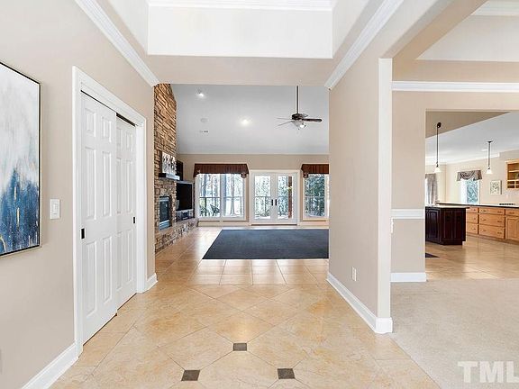 Custom-built basement home with gorgeous views of Trace Lake nestled on a .38 acre cul-de-sac lot in the prestigious gated golf course community of Carolina Trace. This stunning home has one story living with a 5-car garage & multiple flex rooms. Architecturally designed w/ an open floor plan & an abundance of natural light that shines through. Outside living is appreciated from a covered deck & walk-out patio that backs to a natural wooded buffer. Neighboring lot also available for sale.