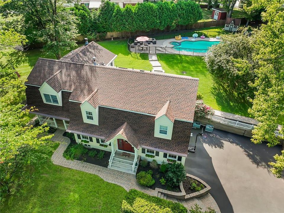 Welcome to 11 Theis Lane, a custom colonial on one of Blauvelt's prettiest streets. This gorgeous center hall design boasts nearly 4000 square feet of elegant living space. It sits majestically on almost an acre of manicured. An inviting front porch greets you from the moment you arrive via the lovely paver walkway amidst graceful shade trees and plantings. This traditional layout features a beautifully appointed formal dining room and living room off the entry foyer with hardwood floors and fresh neutral paint. Continue on to the kitchen with its wide-open floor plan, tons of custom cabinets, rich granite countertops, and high-end appliances. The breakfast "nook" can easily seat ten and features a vaulted ceiling with skylights. Just off the kitchen is a massive family room with lovely architectural details, an inviting fireplace, and built-ins. There is a full bath and guest room/office on this main level, with four huge bedrooms and three full baths upstairs. Take the gracious staircase to the upper level, where you'll find the primary suite, a carefully designed addition to the original house. It features an enormous bedroom, a walk-in organized closet, and two additional closets. The master bath features custom tile treatments, a large soaking tub, and a separate shower. Two additional beautifully tiled baths for the secondary bedrooms are quite large, with carpet over the hardwood floors. In the home's lowest level, you'll find a finished basement area with a walkout through an oversized two-car garage. The shining touch to this home is a fabulous backyard graced with a gorgeous patio, herringbone paver walkways, and a lovely inground Anthony Sylvan gunite pool and spa. Exquisite, mature hedges provide incredible privacy. The perfect home for entertaining! Additional Information: ParkingFeatures:2 Car Attached,