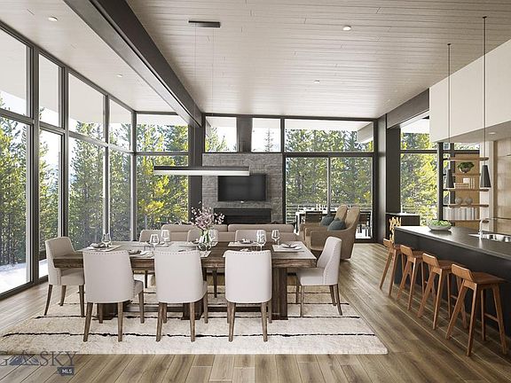 Featuring the coveted mountain modern design, this cabin is set amidst old-growth trees in Moonlight Basin and takes in spectacular views of Lone Mountain, the Spanish Peaks Range, and Fan Mountain. Simply ski from your door to the Six Shooter lift for easy access to world-class skiing at Big Sky Resort. And only steps away from this residence, you'll find Ulery's lake, a winter and summer trail system, Moonlight Outfitters, and Moonlight Basin's newest Club amenity - the LakeLodge (estimated completion summer 2021). The new Lodge will offer an outdoor swimming pool, hot tubs, restaurant, bar, indoor gym with climbing wall, work out facility and locker rooms. With 4 bedrooms, 4.5 baths, open concept living/kitchen/dining, two family rooms, and vaulted ceilings, this cabin is the ideal mountain retreat.