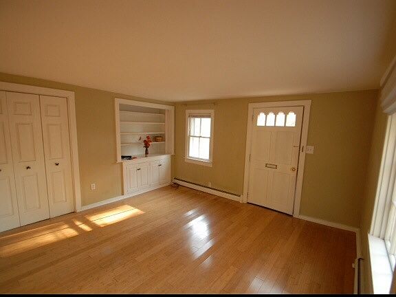 - Built-Ins, Crown Molding, Exposed Beams, Skylight(s), Wood Floors, Family Room Off Kitchen
