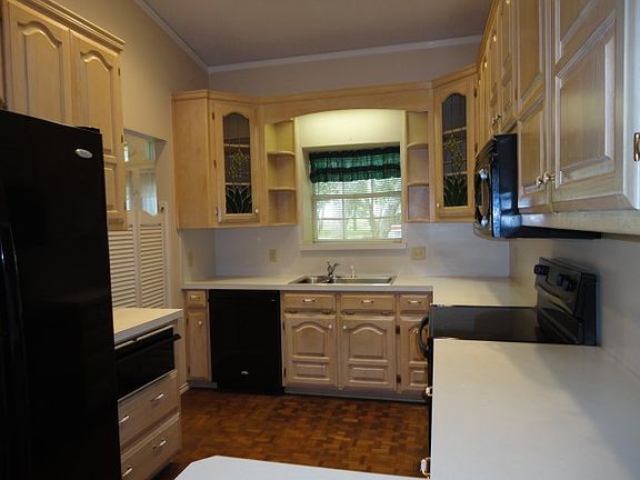 Beautiful 3-2-2 brick home on a 1.12 ac (m-l) wooded lakefront lot in Timber Ridge; Spacious den with WBFP insert & carpet; Kitchen with parquet flooring, white-wash custom cabinetry, Formica counters, built-in black appliances including dishwasher, refrigerator, free-standing smooth cooktop electric range, warming drawer, & built-in microwave; Split bedroom arrangement; Office or sunroom with builtin desk & cabinets; Huge carport; Dock on lake.
