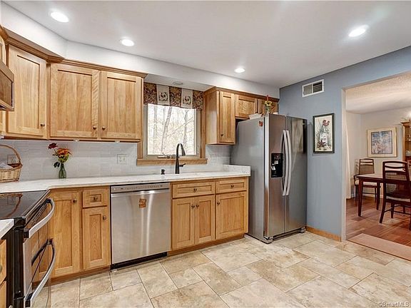 Location, location! Spacious Colonial set on a cul-de-sac in desirable Settlers Woods. This one owner home boasts pride of ownership and has been meticulously maintained. Remodeled with many updates throughout. Kitchen with quartz countertops and SS appliances. Gleaming hardwood floors throughout. Formal living room, dining room, and family room with sliders to deck. Master bed room with remodeled private bath. Two additional bedrooms and another full bath complete the upper level. Plenty of storage and expansion possibilities exist in the lower level. Energy efficient home with solar panels to minimize your electric bills. This house is truly move-in ready! Near to beaches, Milford down town green, restaurants, shopping and highways.