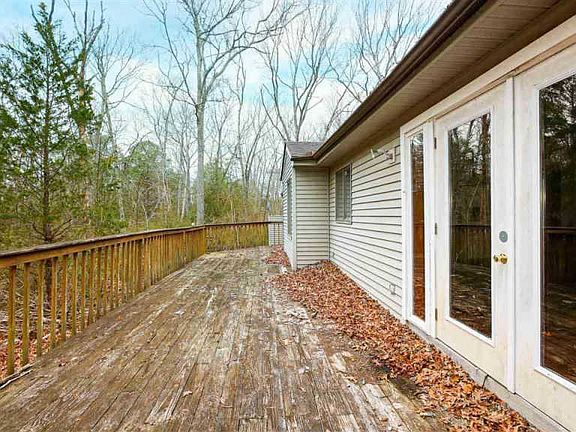 This charming home features quiet country living on a very large wooded lot. As you enter the tiled foyer, to the left is a sunken living room featuring dramatic cathedral ceilings and a stunning fireplace with french doors to the dining room. From the dining room you step out to the huge deck over looking the back yard. The sunny kitchen has a lots of room and a large breakfast bar to enjoy your morning cup of coffee or tea. Down the hall there are 3 bedrooms and 2 full bathrooms as well as a utility room, which leads out to the garage. The master suite features a large walk-in closet, private bathroom with soaking tub, dual sink vanity and large walk in shower. From the master bedroom there are sliding doors out to the deck.