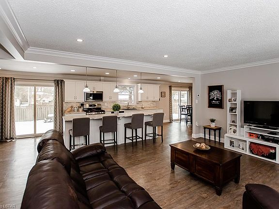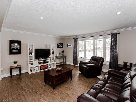 Impressive, oversized family home with 4 bedrooms and 3.5 bathrooms located in sought after subdivision. This brick split level home is situated on a corner lot on quiet cul-de-sac. Bring all the cars and toys as this large driveway has room for it all! Attached double garage (with gas heater) plus detached single garage (with 220 volt plug) is dream come true for city living. Step inside to find an open concept floor plan with custom built kitchen (2017) including modern finishes and large island! Upstairs, 3 bedrooms include spacious master with its own private, updated, ensuite! Head to lower level and unwind in this generous sized family room with fireplace and separate entrance to the backyard. Additional bedroom and half bath make this a great space for guests! Basement unfinished with tons of room for storage, including a cold room. Original owners, shingles 2014, main floor laundry, gas furnace + central air 2020, and so much more! Come tour this well built home that's just 30 minutes from London! Offers welcome Sunday, March 7th.