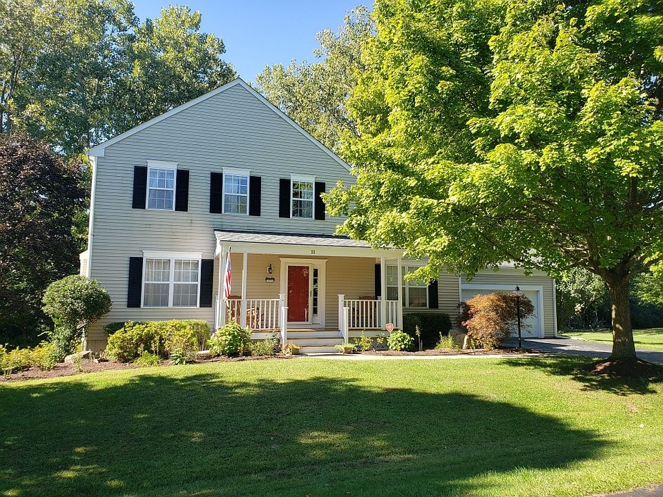 This 4 bedroom 2 1/2 bath colonial with mountain and pond views is set in the idyllic community of Deerfield Ponds with amenities including pool, playground, fitness center, club house, tennis and basketball courts. Includes many updates including new asphalt roof, hardwood floors, appliances and fixtures. First floor features open floor plan with living room, formal dining room, family room with fireplace, open concept eat-in kitchen with stainless steel appliances, deck with nature views, powder room, laundry closet, master bedroom suite with dressing room and full bath. Upstairs features 3 BR's, walk in closet, and a full bath. Large unfinished basement for extra storage.