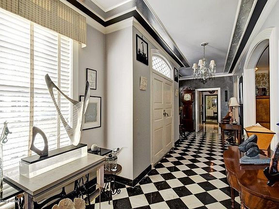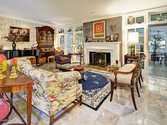 You've probably admired this elegant French Colonial on a beautifully landscaped lot with fabulous curb appeal as you have driven by! It has a large foyer, formal living & dining rooms, solarium, fruitwood paneled library, first floor master, 2nd first floor ensuite bedroom, large well equipped kitchen with breakfast area and sitting room. Over the 2 1/2 car garage are a bedroom, full bath, and office which could be used as a fourth bedroom! It was originally built in 1953 by Lucy and Jeremiah Beam, (Jim Beam distillery). The architect was Ed Gregg & landscape planned by Ann Bruce Haldeman.