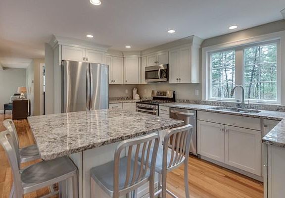 ABSOLUTE BEST DEAL IN NORTH READING! LOCATED IN HIGHLY DESIRABLE "EISENHAURE FARMS"! This (4+) bedroom home was re-built from the foundation up in 2014. The gourmet kitchen features PREMIUM SCHROCK CABINETRY, GRANITE COUNTERTOP & STAINLESS STEEL APPLIANCES! The bedrooms feature gleaming hardwood floors w/ huge double closets. The guest bathroom features plank style flooring w/ double sink and quartz counter top. Master suite with full walk in closet & custom master bath featuring double sink w/ carrera marble flooring and countertop. The master bath has a walk in carrera marble shower w/ Kohler fixtures. Second floor separate laundry room w/ storage. Totally finished walk up 3rd floor with additional bedrooms / play room featuring new carpet and recessed lighting. Walk out basement with natural sunlight ready to be finished! Brand new (4) bedroom septic, custom patio and private wooded lot. Walk to the prized Batchelder School and town center. This rare opportunity won't last...