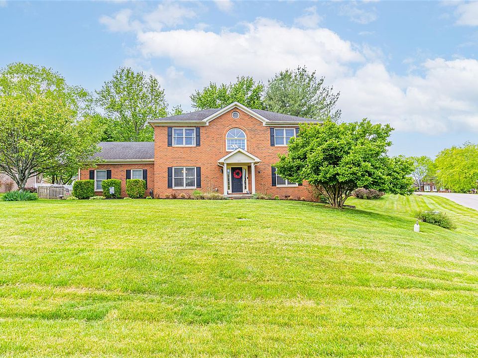 Welcome to 11 Trapper Way! This stunning two-story brick home in Deer Meadow subdivision offers a main level master suite with a beautifully updated master bathroom. The upstairs holds the rest of the three bedrooms, along with balcony views to the living room and entry. In addition to a formal dining space, the classic eat-in kitchen features granite counter tops and a stone back splash. You will love this home's large, peaceful lot with a custom patio and fire pit. Be sure to check out this gorgeous home!