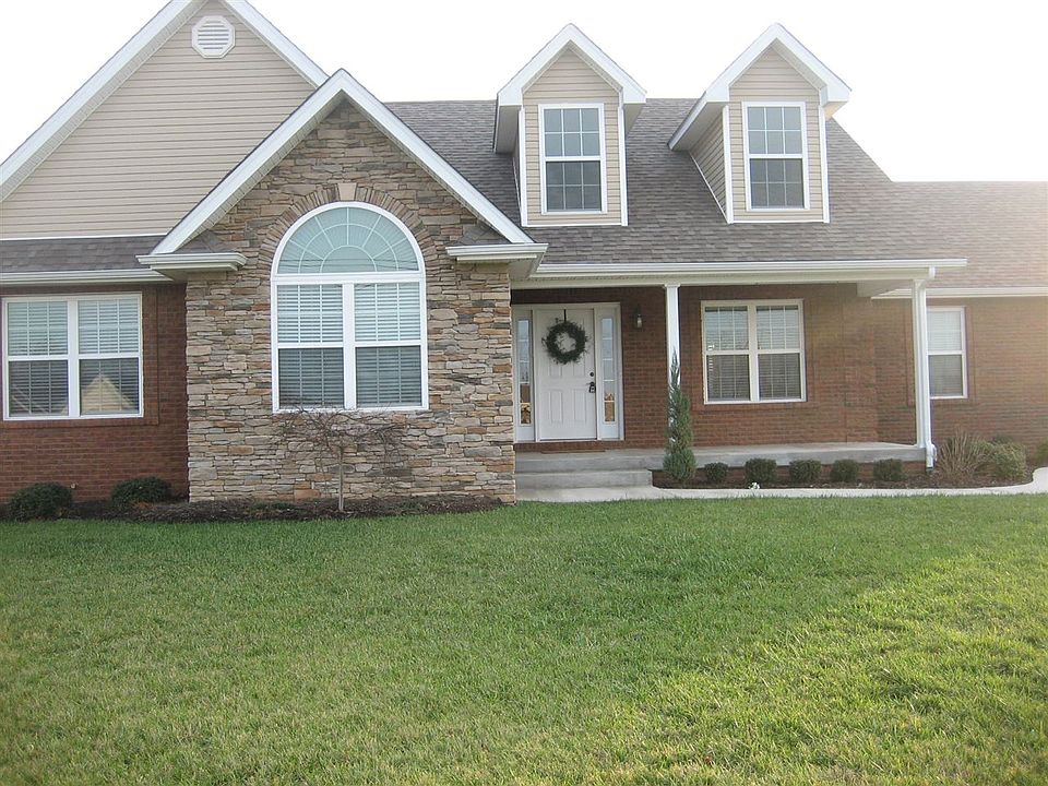 Curb appeal here! Stone and Brick veneer Ranch 3 bedroom, 3 bath. Featuring hardwood floors in formal dining room and gas log fireplace in living room. Partially finished walk-up basement with full bath and family room. Lots of storage in the unfinished section of the basement. Pets with prior approval and $375 non-refundable pet fee. 20 miles to Fort Knox. Available 7/1/16.