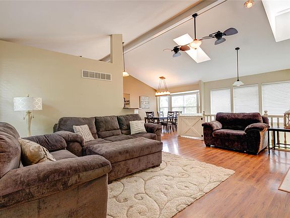 Don't miss out on this spacious atrium ranch in O'Fallon! Enter to the open floor plan that's perfect for entertaining! The bright living room features a wall of windows and gas fireplace. It opens to the dining room and kitchen, all with vinyl plank floors and soaring vaulted ceilings! The kitchen has tons of counter and cabinet space, breakfast bar, and glass tile backsplash. Vaulted ceilings continue into the master suite, with a large walk-in closet, bathroom with a soaking tub, separate shower, dual-sink vanity, and skylight! Convenient main-floor laundry with utility sink. Two more bedrooms and another full bath with a skylight complete the main floor. The finished basement doubles your living space! A 4th bedroom with bath, family room, and a den with wet bar! In 2016: new paint, basement carpet, vinyl in laundry and LL bath, light fixtures. Enjoy the fenced backyard with above-ground pool, patio, and playset! In a great location just off Highway K, you're close to everything!
