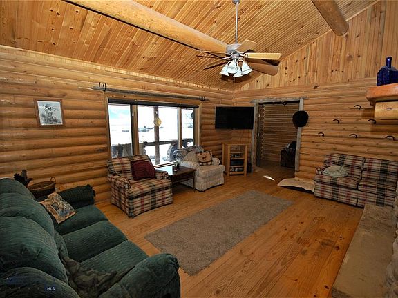 Large River Rock propane fireplace is the center of this traditional log ranch home (on Lot #95 - 7.256 acres & Lot 96 - 7.489 acres of VC Ranches for a total of 14.745 acres) with 3 bedrooms-2 baths, a SHOP, and expansive views of the Madison Mountains. The eastern views (and morning sun rises) come into the living room and master bedroom suite in early morning and the covered back patio protects from the heat at the end of the day. The front pasture is the perfect place for your horses. Range, refrigerator, dishwasher, wood stove in the house and wood stove in the shop shall convey at closing without any warranty of condition. There are two 1000 gallon propane tanks and one 500 gallon propane tank. Fiber Optics are scheduled to be installed this summer making this house a perfect location for your new home /office. Don't miss the shop and large parking area for your toys.