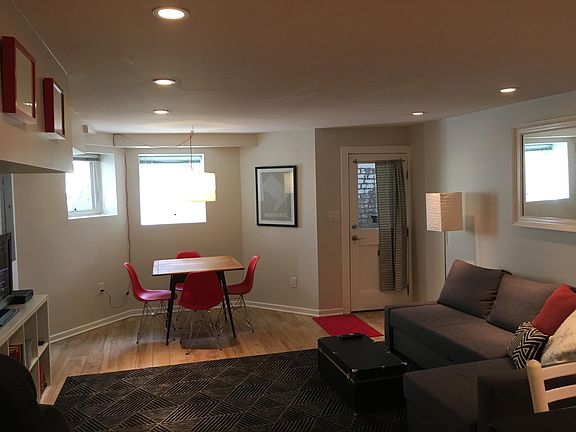 Furnished or unfurnished end unit English basement apartment in hip Bloomingdale neighborhood. End unit apartment so gets lots of light. Available immediately; prefer 1 year lease; no pets please; no smokers; includes all utilities and once per month professional cleaning; on Crispus Attucks park; walk to restaurants and bars; easy access to bus lines and metro. Furnishings can be removed or negotiated. All utilities included; wifi included.