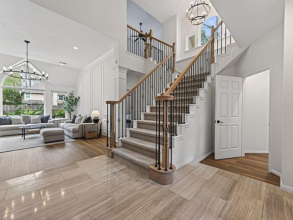Absolute dream nestled on a private cul-de-sac lot! Gorgeous remodel w/tasteful farmhouse design and features upgrades galore! Including new roof, hvac system, water heaters, new LVP down, all new windows, new pex plumbing and new stunning pool! Stunning entry w/soaring ceiling opens to formal dining and beautiful staircase. Oversized living features designer lighting & wall of windows. Charming double fireplace to keep living & breakfast/Kitchen area cozy! Craftsman molding & architectural detailing throughout. Kitchen features upgraded appliances, lighting, soft close cabinetry, quarts countertops & sleek black hardware all complete in 2023. 2 Bedrooms down including primary w/dream remodeled spa bath! Easy family living with 2 bedrooms up and oversized game room! Dream backyard complete with new heated pool, fenced & ready for your summer entertainment! Bonus Storage in Attic! This one won't last long with it's exceptional features & highly desired location.
