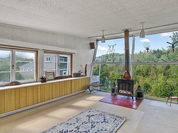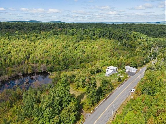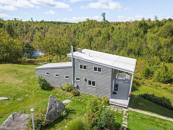 Inspired by famous architect Frank Lloyd Wright, this house and detached studio were designed with a view of forest and pristine historic 12 mile brook, alive with native brook trout, located on two acres. There are no neighbors within sight. Relax on a spacious beautiful stone walled patio. An open floor plan offers a kitchen with dining area, living room with flue for woodstove or pellet stove, and a master bedroom with a private deck where you may sip coffee in your sunny sanctuary while enjoying a gorgeous view of the nearby beaver pond teeming with wildlife. The second floor has two bedrooms. Have an office or rec room in the heated walkout basement with full windows. The studio/office with wood stove and available propane stove is 280’sq, and the garage/workshop and below studio workshop, both with 220V service, total approximately 410’sq. Enjoy free year round hiking and winter snowshoeing only eight minutes away on scenic Trustees of Reservations Peaked Mountain.