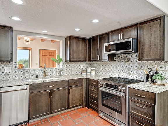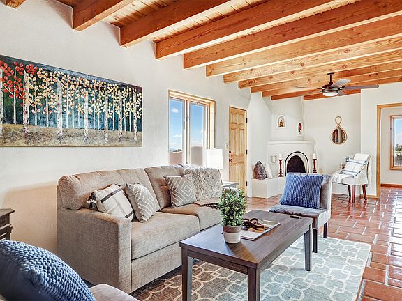Indulge in the irresistible allure of Eldorado with this captivating Pueblo-style home, where Southwestern elegance intertwines effortlessly with modern comfort. From the moment you step inside, you'll be enchanted by the rustic beauty of wood-beamed ceilings, the earthy charm of adobe walls, and the inviting warmth of a wood-burning kiva fireplace, creating a cozy retreat in the heart of the living space. The kitchen is a culinary paradise, boasting high-end appliances, a dazzling tile backsplash, and luxurious granite countertops, perfect for both everyday cooking and hosting memorable gatherings. This meticulously crafted home has been thoughtfully upgraded throughout, ensuring a seamless blend of style and functionality. Outside, a serene oasis awaits in the form of a relaxing backyard, offering the ideal setting for unwinding amidst the tranquility of nature. The Eldorado community beckons with an array of amenities, including scenic hiking trails, swimming, biking, basketball, stables, a dog park, children's parks, tennis courts, and a vast 4,000-acre nature preserve, providing endless outdoor adventure and recreation opportunities. Conveniently located just 25 minutes from Santa Fe's historic Plaza, this home epitomizes the quintessential Eldorado lifestyle, offering a perfect balance of luxury, comfort, and natural beauty. Don't miss your chance to experience the enchantment of Eldorado living. Schedule a viewing today and prepare to be captivated!