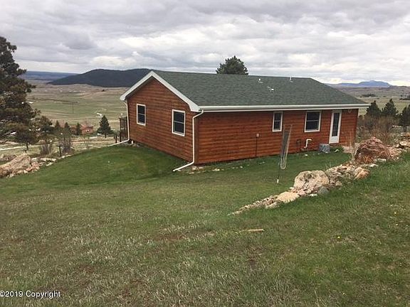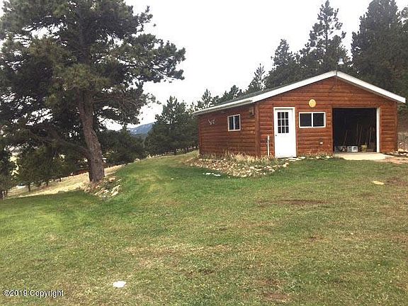 Log sided home on 5.4 acres bordering National Forest- located just 1.8 miles North of historic Sundance Wy. and includes truly breathtaking views of the Black Hills. The home has 2 bedrooms, one 1.75 bathrooms, kitchen, living room, family room and a 2 car drive under garage. There is also a 22'x24' detached garaqe and a 25'x42' detached shop with plenty of storage. All of this next to US Forest Service land, city water and priced at only $295,000.00.