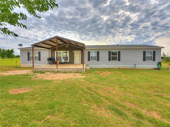 2,184 square feet manufactured home sitting on 5 acres in Dale Schools! This westward facing property boasts 4 bedrooms, an open floor plan with dining area, laundry room, and a detached workshop with carport. The large covered concrete patio is perfect for hosting events and enjoying a Summer evening outdoors!