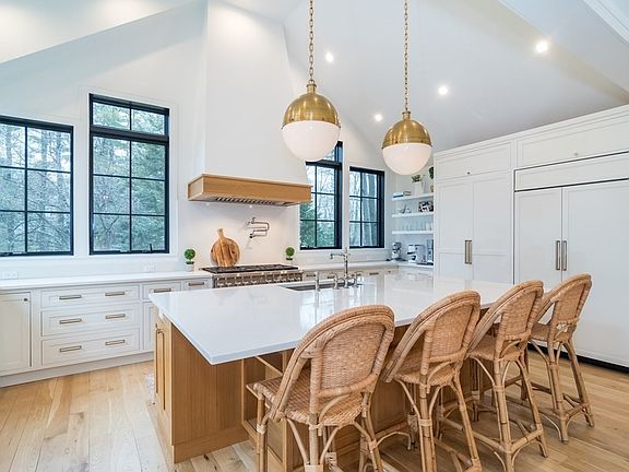 A truly incredible home with stunning and stylish design. Situated on the picturesque Brook Path with beautiful views, this renovated custom home is one of a kind. You will be the envy of your friends with the most impressive kitchen. Soaring ceilings and tall windows frame this gorgeous room, and cooking is made easy with custom made cabinets, high end appliances and quartz countertops that top off a grand wood island that sits up to 6! The airy wide plank white oak floors carry you through the first floor which is open with a family room, dining and living room each enhanced by one of the two fireplaces with marble surround. First floor living at its best in a stunning main suite with an impressive bath that boasts a heated floor, dual sinks and a spacious shower with metal accents. Two more bedrooms (with great closets) plus a sunny office upstairs. New systems throughout. Walk to shops, restaurants, schools and the train from this A plus location- the Brook Path takes you there.
