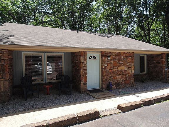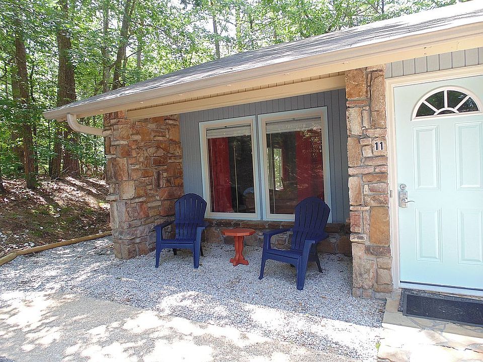 Don't wait on this opportunity! One level, end unit, 3 BD, 2 BA townhome with deep parking pads for 4. Beautiful woods in back and on one side. AR room (set up as 4th bedroom), and a rear deck. Roof about 7 yrs. Completely updated in 2022 with LVP flooring and carpet in bedrooms. Granite countertops in kitchen with stainless appliances, and new washer & dryer in 2023. Large, tiled showers with glass doors. Each bedroom has nice walk-in closets. Tastefully decorated and fully furnished as pictures show, as well as linens, kitchen cookware, dinnerware, etc. Previously used as AirBnB with great success. Replaced all windows in 2023 with Royal Windows. Close to West gate shopping, dining, and many amenities. Short drive to Hot Springs. Concrete slab storage/wksp below. Note: Dues are $87 to THA and $110 to POA effective 2024.