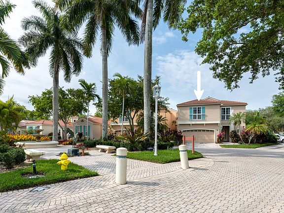 This adorable, corner home is located in Villa D'este, a quaint, Tuscan-themed neighborhood with fountains, Mediterranean Piazzas, winding streets, and shady trees. Gas coach lights are accoutrements on each residence, lit 24/7. Within the grounds of PGA National Resort, membership (golf or social) at the Resort is a great option! The design has living quarters upstairs, leaving downstairs open for entertaining with a flow coming directly from the kitchen and family room into a private courtyard. The living room, with its soaring ceiling affords ample, natural light into the space. The A/C-2021, quartz kitchen counters-2019, California closets-2019 are within a few years. Take this opportunity to put your personal mark on this home making it yours!!