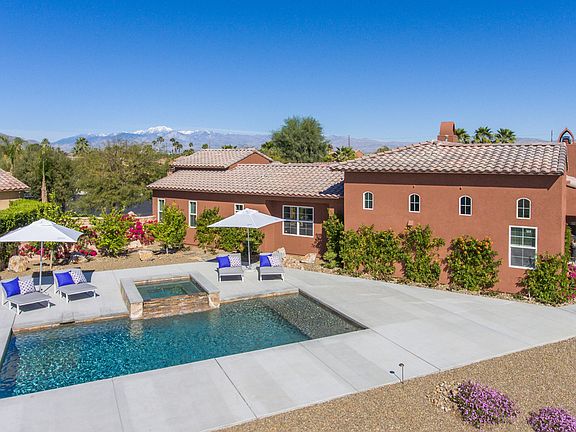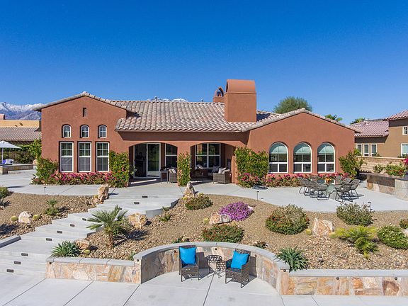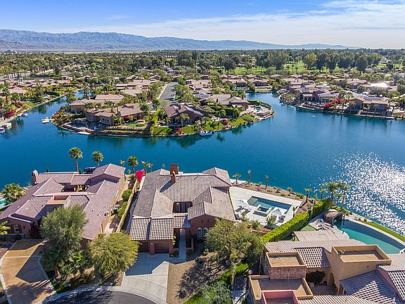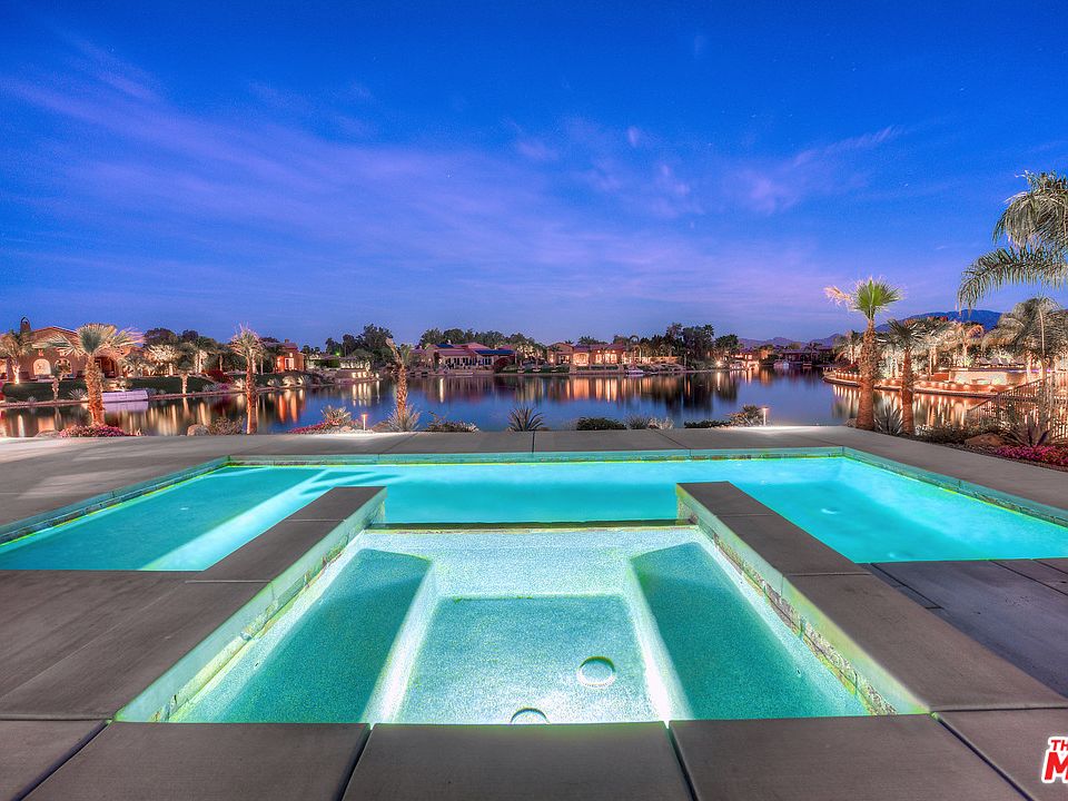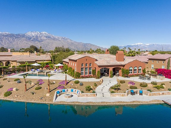 Boating in the Desert! Welcome to the finest Luxury Lakefront Private Resort, with the largest Lake & Mountain View lot in the scenic nine-acre lake of Santo Tomas gated community in Rancho Mirage. The residence was recently redesigned as an Entertaining destination with panoramic lake views Inside & Out. Choose where to dine: under the covered porch, next to the barbeque lakefront or on the lakefront entertainment area. Swim in a newer Pebble-Tec pool with a stacked stone waterfall spa. There is a large barbecue island with seating area. Enjoy the lakefront offering: stacked stone gas fire pit with built-in seating for 10 people, dining/seating area and a concrete cantilevered dock to launch your paddleboard, canoe or kayak. Additional features: Separate guest casita with wet bar, AC and luxury bathroom, huge lake view Master retreat with fireplace, large his and her bath, soaking tub, a walk-in shower and closet, large Great room with luxury cooks kitchen, separate bar and fireplace