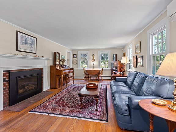 Welcome to this classic West Falmouth Cape, filled with all the charm, warmth and contemporary touches one would expect. With enviable proximity to the perks of the area - Chapoquoit Grill, West Falmouth Market, Chapoquoit Beach and bike path - you'll be able to indulge all your Cape Cod passions. Beautiful hardwood flooring runs throughout, with a gas fireplace at the center of the living room which graciously allows for formal dining and opens to a custom designed kitchen. Granite countertops ensure plenty of space to prep, with laundry conveniently tucked in a discrete corner. A tastefully updated bathroom's accented by a walk-in shower and pedestal sink, and a versatile 1st floor bedroom easily transforms into a cozy den or home office. Upstairs offers two spacious front-to-back bedrooms, dual linen closets and a 2nd full bathroom. Mitsubishi mini-splits ensure comfortable summer nights and an unfinished basement allows for storage and the boiler and water heater, both under 10 years old. An expansive yard bordered by conservation and populated with mature trees is easily enjoyed from the comfort of the back deck. A trip to the top of the street reveals views of Buzzard Bay.
