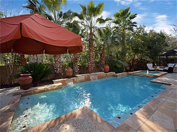 OVER $45K in RECENT UPDATES! Situated on oversized CDS/interior lot! Premium updates include: Hardwood/tile flooring throughout + wood stairs; granite kit w/SS appls(dbl oven/gas stove), 42-in cabs, built-in desk; plantation shutters throughout; updated MBR bath; granite baths upstairs; wrought iron detail; custom built-ins; walk-in storage/closets; private backyard oasis w/saltwater pool & spa, fire pit, canvas pergola, true 3 car garage, walk to top-ranked schools. park/pool; & MORE!