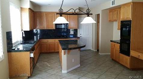 This property is located in the Tuscan hills community. This beautiful home has tile throughout the downstairs and a number of other quality touches. View from the backyard. The backyard is accessible through double French Doors.