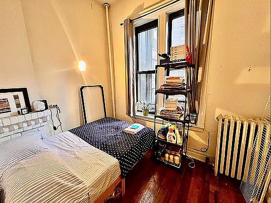 Flexed 2 bed on the 3rd floor of a walkup building. The apartment was originally a large 1 bed but has been flexed to a 2 bed. Both rooms can fit a full bed. Small living space Kitchen has dishwasher