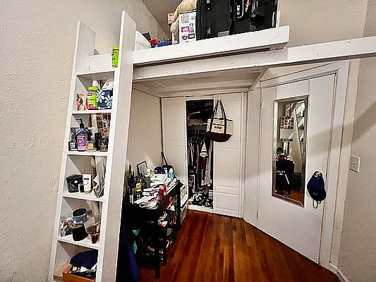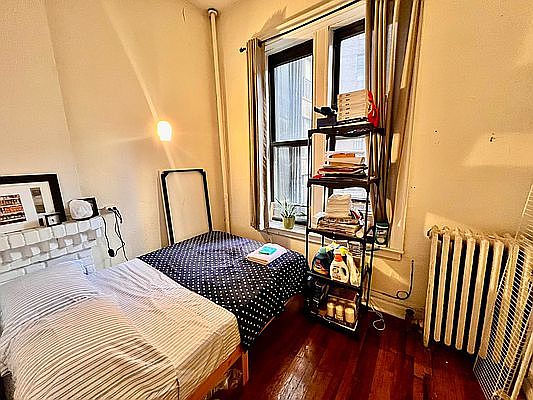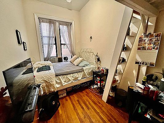 Flexed 2 bed on the 4th floor of a walkup building. The apartment was originally a large 1 bed but has been flexed to a 2 bed. Both rooms can fit a full bed. Small living space Kitchen has dishwasher