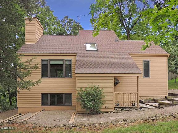 Charming rustic contemporary retreat set back and tucked amidst the trees on a 1+ acre homesite near end of cul-de-sac offering a private setting and beautiful natural scenery all around. Open and airy main level features large living room with vaulted wood clad ceilings and dramatic floor-to-ceiling stone wood-burning fireplace, comfortable dining area, galley kitchen with lots of cabinetry, light and bright three seasons room with access to deck looking into the trees, spacious master bedroom with its own vaulted ceilings and access to nicely appointed full bath. Upper level loft-style bedroom has adjoining half bath and overlooks main level living area below. Finished lower level houses cozy family room with stone wall accent, wood-stove, and walk-out access to rear yard and gravel patio space, additional guest bedroom, laundry/utility room, integrated shed/workshop, den/office/study (currently set up as additional sleeping area), and additional full bath. The grounds are highlighted by stone walkways and railroad tie steps surrounding the house. Park-like yard space and stunning treed surroundings add to the ambiance and warm and inviting Northwoods feel. Adding to the privacy, lot is bordered by huge greenspace to rear and also on one side. Square footage on main and upper levels sourced from Jo Daviess County Assessor, and lower level square footage based on approximate measuring.