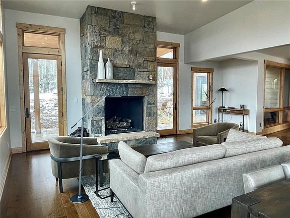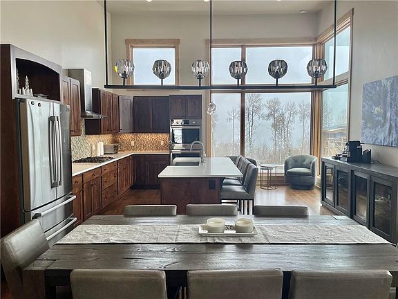 COMPLETED Summit Sky Ranch home. This double master home is ideal for entertaining, featuring an open living and kitchen with floor to ceiling windows, a lower level rec room that is perfect for a home office or movie nights, and three additional guest bedrooms. The covered, flagstone patio is complete with an outdoor fireplace and a fire pit. You will love spending your summer evenings catching up with family while roasting a few s'mores. Located near all the community amenities.