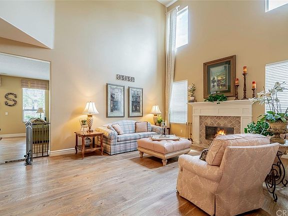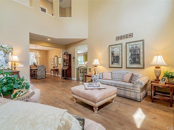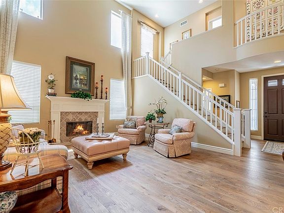This is the ultimate home for living, entertaining, and lifestyle. The home has a wonderful floorplan that is very open and light. Step into the living area with two-story high ceilings. The home features French oak flooring throughout, with tile in upstairs bathrooms and laundry area. Absolutely beautiful! The kitchen has lots of counter space and storage as well as a center island and double convection ovens. There is a dining area in the kitchen and a separate large formal dining room. The family room is adjacent to the kitchen. There are fireplaces in the living room and family room. The kitchen and family room overlook the inviting salt-water swimming pool, spa, outdoor kitchen, and patio area. The water cascading into the pool and the orange, lemon and lime trees in the backyard have a tropical feeling. There is a dog run on the side of the home as well. Upstairs are four bedrooms and the laundry room. One of the secondary bedrooms has an en-suite bathroom. Two other bedrooms share a Jack-and-Jill bathroom. The master bedroom is spacious with lots of windows and the master bath is located away from the bedroom for privacy. The fifth bedroom is downstairs and is currently being used as a pool table/game room with a beer tap and refrigerator that has its own entrance at the front of the home and would make an excellent in law suite! Guard-gated community entrance with community pools/spas and clubhouses. Hiking and biking surround the entire area.