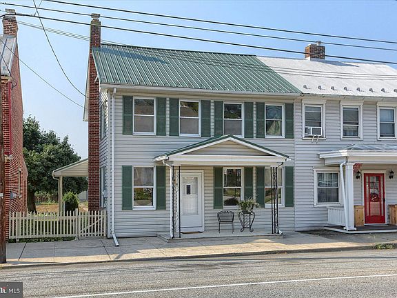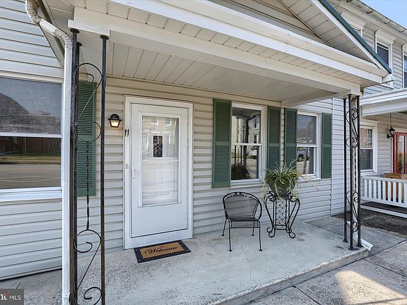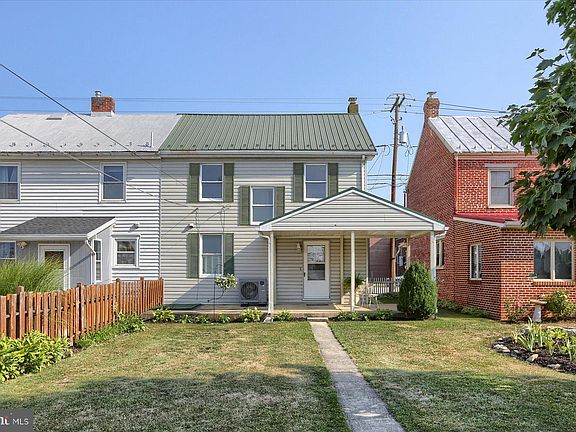 Well maintained home in the heart of New Kingstown. Great location just off the Carlisle Pike also backs to the beautiful Potteiger Park. Detached one-car garage w/new door, storage above plus off- street parking at the back. Covered back porch and spacious backyard include 2 fruit-bearing pear trees with room for a garden, entertaining or relaxing. Metal roof, vinyl siding plus recently updated heat pump, central air and hot water heater will ensure comfort and peace of mind for years to come. Covered front porch leads to a generous living area. Kitchen includes refrigerator, new stove and space for dining. Freshly painted throughout, replacement windows, and some new flooring. 3 bedrooms on upper level. Walk up attic and basement also provide plenty of room for storage. Don't miss your chance to own this property with small-town charm.