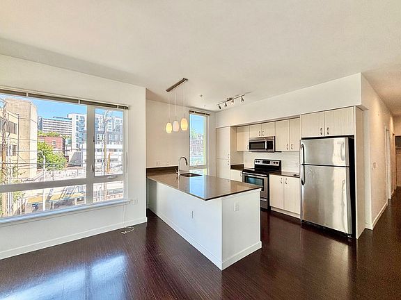 Uptown 11 offers exceptional amenities, including a modern lobby, elevator, secure gated garage, storage room, and a stunning rooftop terrace with breathtaking views of the Space Needle, city skyline, and Puget Sound. The rooftop also features upscale patio furniture, creating the perfect space for gatherings. High-speed internet is available for seamless connectivity. Please contact us for details on internet service, storage, and parking availability.